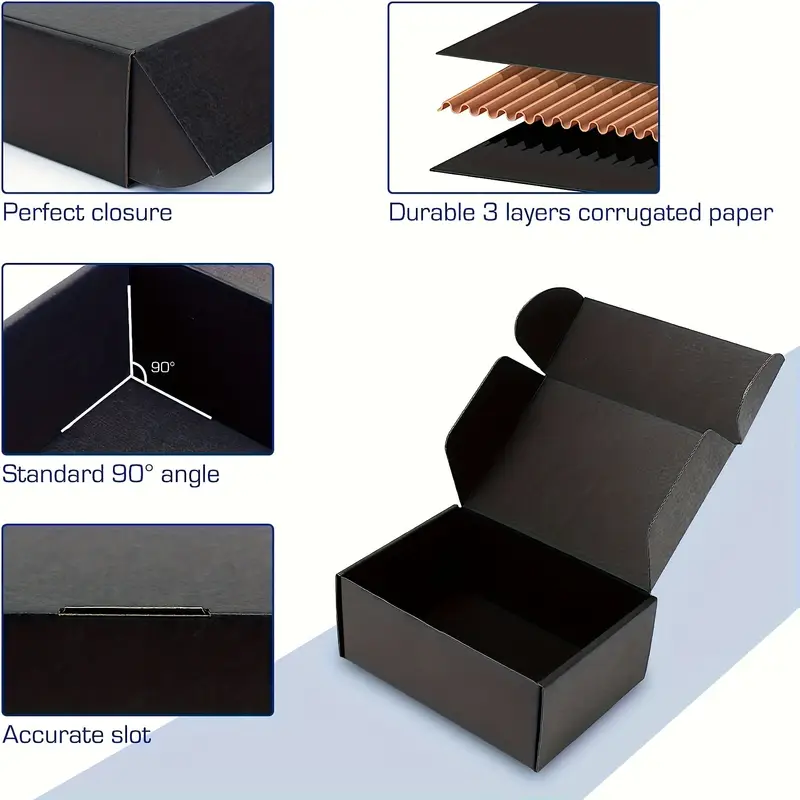 Compare50pcs Black Corrugated Cardboard Shipping Boxes – 3-Layer Extra Durable, Foldable Size 12.95×7.87×2.79 cm – Ideal for Small Business Packaging & Craft Gifts